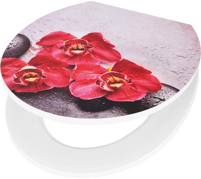 A Dulce WC-ülőkét kiváló minősége, divatos formaterve és hasznos tulajdonságai miatt kedvelik. Csúcsminőségű duroplasztból készült. Tapintásra olyan, mint a hagyományos kerámia. Ezenkívül törésbiztosságával és rendkívül hosszú élettartamával emelkedik ki. A duroplaszt pórusmentes, és az antibakteriális hatás miatt könnyen kezelhető. Stabil, rozsdamentes acél zsanérok gondoskodnak a WC-ülőke és a fedél közötti biztos és tartós kapcsolatról. Szép formaterv és kiváló minőség A leeresztő automatika a fedél halk és lágy lecsukódását teszi lehetővé. A Take Off funkciónak köszönhetően az ülőke levehető a WC-ről és újra visszatehető. Ez megkönnyíti a teljes WC tisztán tartását. A magasfényű akrilfelület különösen kihangsúlyozza a divatos virágmotívumot, és így valódi szemet gyönyörködtető látványt nyújt. Erős kivitelezésének köszönhetően 150 kg-ig terhelhető. A csomag tartalmazza a szerelőanyagot.
