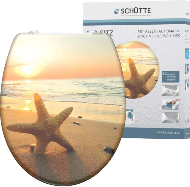 Kényelem és funkcionalitás A leeresztő automatikával és gyorszárral ellátott kiváló minőségű Eisl Sea Star Duroplast WC-ülőke normál méretű, és szinte az összes kereskedelemben kapható WC-csészéhez alkalmas. A gyengéd lezáró rendszernek köszönhetően kellemetlen zajok nélkül csukhatja le a fedelet. Ezenkívül gyorszáras technológiával van ellátva, ezáltal a WC-ülőke egyszerűen levehető. Ragasztólapos plusz rögzítéssel is rendelkezik. A rendkívül kemény felületű Duroplast anyagnak köszönhetően a WC-ülők rendkívül törésbiztos és karcálló. A zárt pórusú felület egyszerű és higiénikus tisztítást tesz lehetővé. Az Eisl Duroplast WC-ülőkét gyerekjáték összeszerelni, és szerelésre kész állapotban, szerelési anyagokkal együtt kerül kiszállításra. Állítható rögzítési technológiával rendelkezik, amely különböző módokon történő szerelést tesz lehetővé. Termékjellemzők: - Szín: Minta három felületen - Tömeg: kb. 1657 g - Max. terhelhetőség: kb. 150 kg Méretek (Ma x Sz x Mé): kb. 45 cm x 37,4 cm x 4 cm