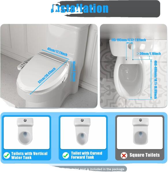 Elektromos bidé WC-ülőke: A higiénia és kényelem új szintje ? Élvezze a tökéletes tisztaságot és a maximális komfortot az elektromos bidé WC-ülőkével! Ez a modern megoldás nem csak a higiéniát emeli új szintre, hanem számos kényelmi funkcióval is rendelkezik, hogy a fürdőszobai élmény igazán pihentető legyen. Főbb előnyök:Állítható vízhőmérséklet: ?️ Válasszon a három fokozat közül (33°C, 36°C, 40°C) a tökéletes hőmérsékletért. Fűtött ülés: ? A hideg WC-ülőke többé nem probléma! A fűtött ülés három fokozatban állítható (33°C, 36°C, 40°C) a maximális komfort érdekében. Speciális tisztítási módok: ? Élvezze a női masszázs, a higiéniai és a mobil tisztítási funkciókat. Automatikus szagtalanítás: ? A beépített szagtalanító rendszer frissen tartja a fürdőszobát. Kényelmes kezelőpanel: ?️ Az oldalsó panelen egyszerűen beállíthatja a kívánt funkciókat, beleértve az automatikus tisztítási és szárítási ciklust. Biztonságos használat: ?️ A szivárgásgátló, túlmelegedés elleni védelem és az IPX4 vízállósági besorolás garantálja a biztonságos használatot. Éjszakai fény: ? A beépített éjszakai fény megkönnyíti a tájékozódást a sötétben. Műszaki adatok:Jellemző ÉrtékSzín FehérMaximális teljesítmény 1350 WFeszültség 220 VCsatlakozó EU szabványRögzítés típusa WC-rögzítésMax. terhelhetőség 250 kgVíznyomás 0,08-0,75 MPaMéret 45 x 52 x 16 cmKönnyű telepítés és karbantartás: Az elektromos bidé WC-ülőke egyszerűen telepíthető a legtöbb WC-csészére. Az öntisztító fúvókák és a sima felület pedig megkönnyítik a tisztítást és a karbantartást.