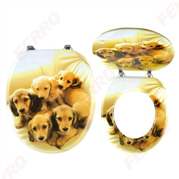 FERRO kiskutyamintás wc ülőke fém zsanérokkal, festett MDF WC/STENATA (WC-STENATA)
