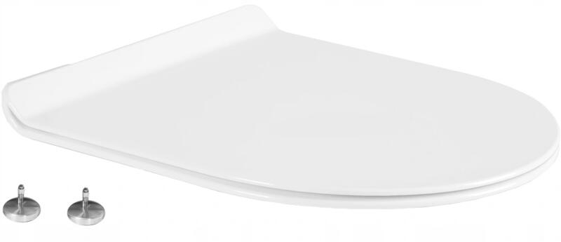 WC-ülőke SLIM DUROPLAST WC-csészéhez LENA RICO SOFIA CARMEN (836) | lágyan záródó   vécé ülőke: Gyártó: Mexen Sorozatok: Lena, Carmen, Rico, Sofia Típus: lassú zárás Anyaga: hőre keményedő Fehér szín Könnyű kiadás: igen Fém zsanérok: igen Vékony változat: igen ID: 39010100