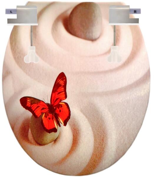 WC tető minta: Bézs - Piros pillangó - alsó ülőrésze fehér WC tető adatok
