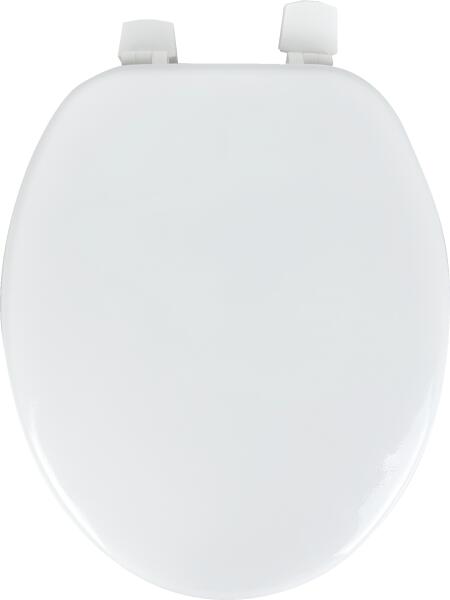 Fehér MDF WC-ülőke műanyag zsanérral.