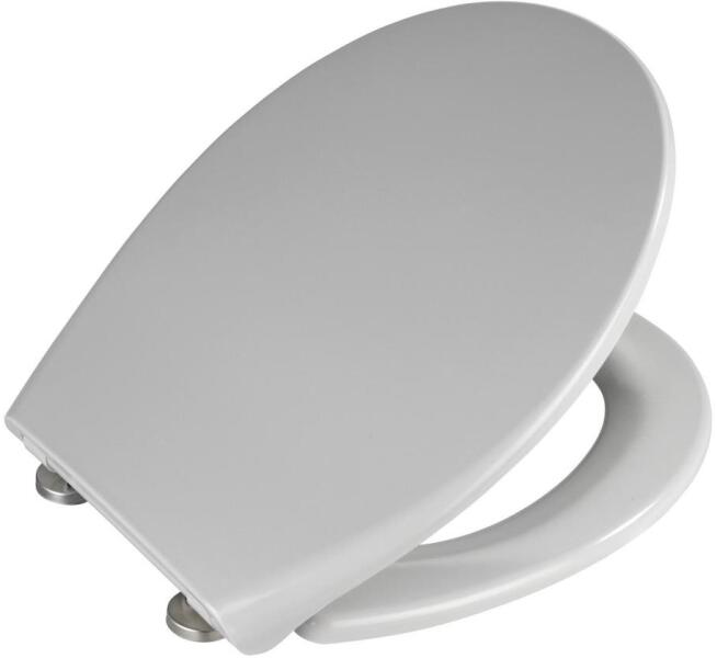 Exkluzív WC-ülőke modern beton-szürke színben. Kiváló minőségű duroplastból készült – tartós, masszív és higiénikus. Antibakteriális felület a maximális tisztaságért. Soft-close mechanizmus biztosítja a fedél csendes, lassú záródását. Biztonságos használat – megakadályozza az ujjak vagy ruházat becsípődését. 1-gombos Fix-Clip rendszer az egyszerű szereléshez és szétszereléshez. Rozsdamentes rögzítés, rugalmasan állítható a szabványos WC-kagylókhoz. Mellékelt falütköző és csúszásgátló betét a stabilitásért. Ellenáll a karcoknak, repedéseknek és a cigaretta hőhatásának. Ideális nagy forgalmú irodai és üzemi mosdókhoz. Könnyen karbantartható – az egész ülőlap egyszerűen leszerelhető és tisztítható. Ergonomikus kialakítás és kényelmes ülés a fokozott kényelemért. Elegáns szürke és matt ezüst színkombináció. Teherbírás és minőség, melyet a gyártó 3 éves garanciája igazol. Méretek: fedél 37,5 × 44,5 cm, ülőgyűrű 37,5 × 41,5 cm, szerelési távolság 9,5–19 cm.