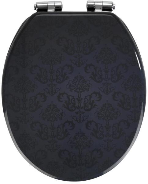 Elegáns WC-ülőke stílusos ornamentális mintával. MDF anyag többrétegű bevonattal a tartósságért és a higiénia érdekében. Könnyen tisztítható, nedvességálló felület. A Soft-Close lassan záródó mechanizmus halk és sima záródást biztosít. Fix-Clip rögzítés a gyors telepítéshez és egyszerű karbantartáshoz. Az ülőke egyszerűen levehető a tisztításhoz. Állítható rögzítőrendszer a szabványos WC-típusokhoz. Masszív fémrögzítések cinkötvözetből, matt ezüst kivitelben. Méretei a legtöbb standard WC-csészéhez illeszkednek. Antracitszürke szín modern megjelenést kölcsönöz a fürdőszobának. Ergonomikus forma a kényelmes ülésért. Kiváló minőségű kidolgozás a WENKO márkától.