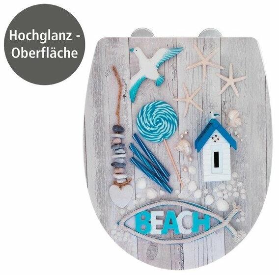 - szélesség: 36,5 cm- hossza: 45 cm- belső méretek: 22,5 x 29 cm- lakkozott- anyag: hőre lágyuló műanyag- szín: vegyes színek (tengeri minta)Univerzális WC-ülőke - a gyártó nem jelzi, hogy az ülés milyen konkrét WC-kagyló modellekhez illik.